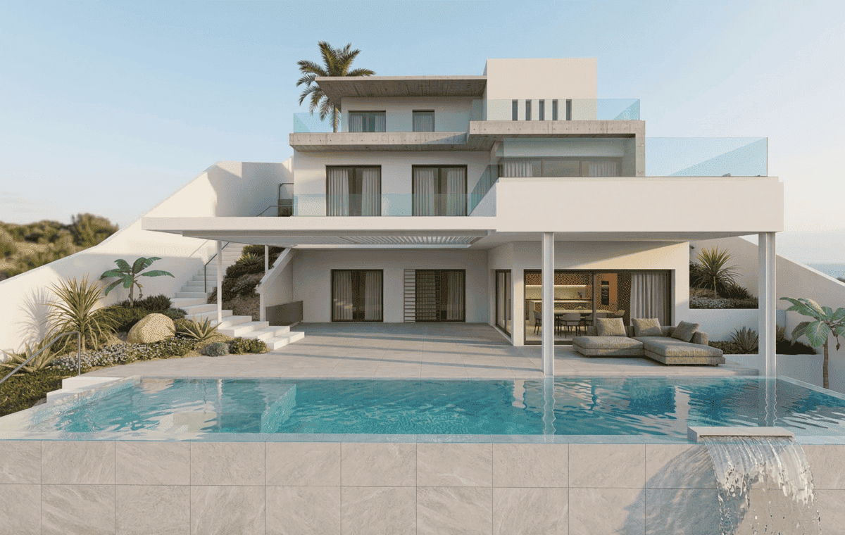 En CYR Arquitectura nos ecantan trabajar en el interiorismo y paisajismo, y cuando Carmen y Michele nos contactaron, supimos que nos enfrentábamos a un reto emocionante. Su parcela en Benalmádena, con un marcado desnivel, presentaba desafíos técnicos, pero la oportunidad de trabajar en un espacio con vistas al Mar Mediterráneo era imposible de resistir.